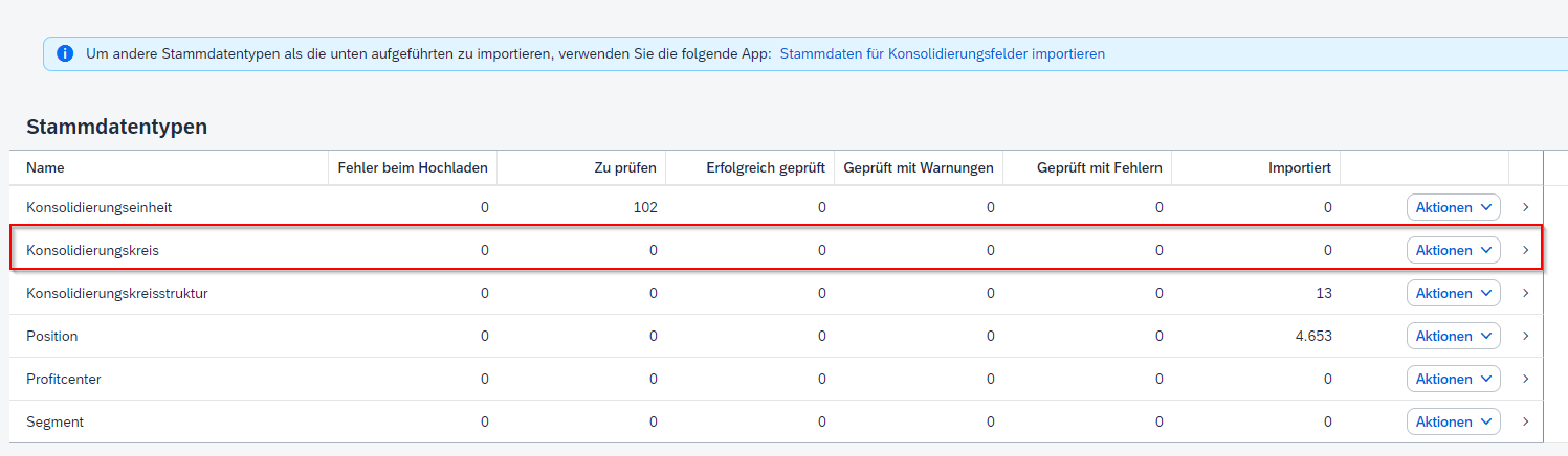 Neben der neuen App wird die Konsolidierungsgruppe als Stammdatentyp in die bereits existierende SAP Fiori-App „Konsolidierungsstammdaten importieren“ (F3924) integriert. Dies ermöglicht den nahtlosen Import von Konsolidierungsgruppen-Stammdaten, was den Gesamtprozess erheblich beschleunigt und vereinfacht.