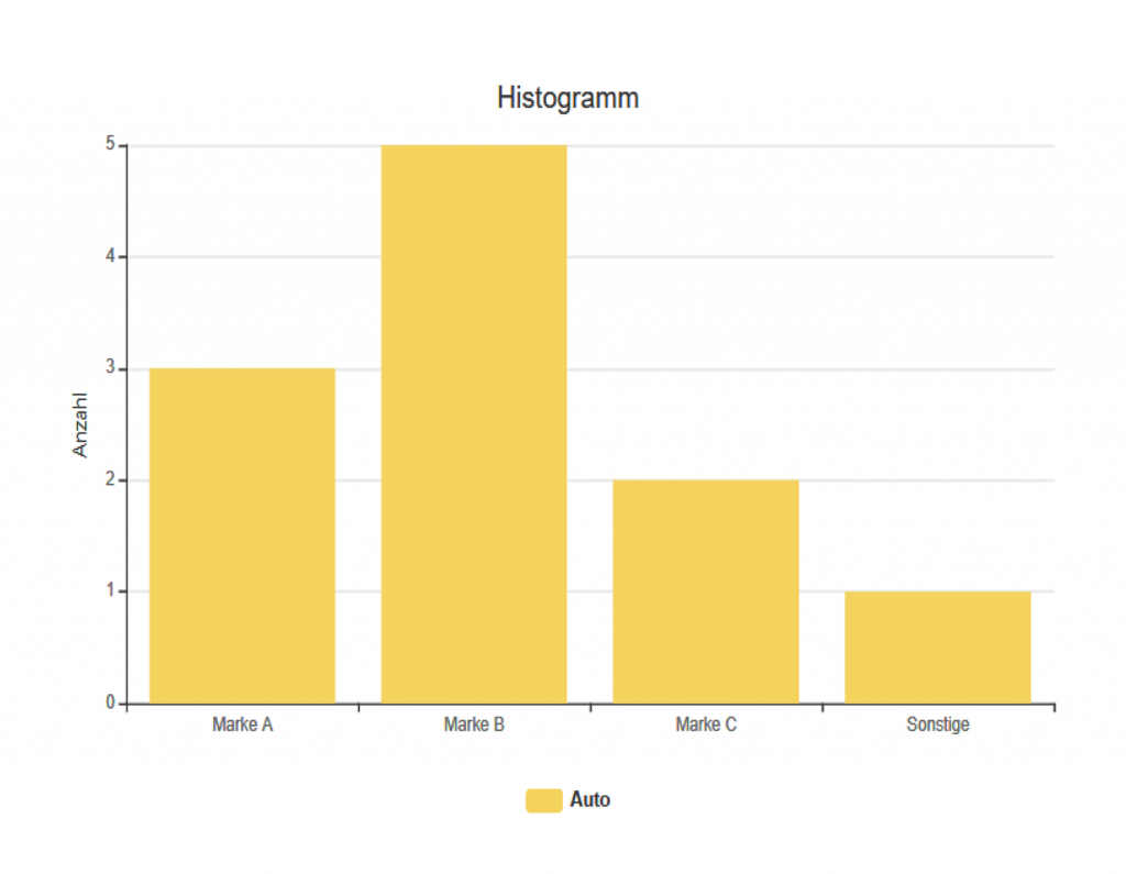 Beispielsweise kann zur Entscheidungsfindung einer Automarke beim Kauf eines Gebrauchtwagens mittels einer Umfrage im Freundeskreis die Verteilung in einem Histogramm abgebildet werden.