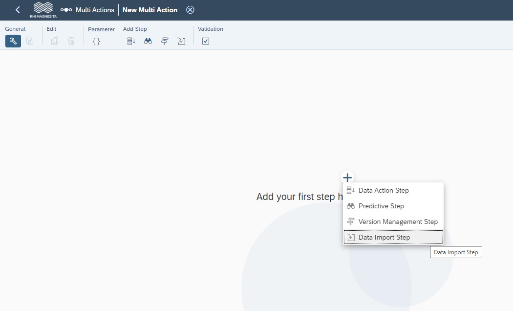 Data Import Step in einer Multi Action der SAP Analytics Cloud erstellen