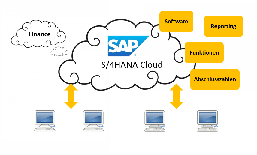 Was bedeutet der Cloud-Ansatz genau? Die IT-Hardware sowie die Konsolidierungssoftware werden von SAP als Services über das Internet bereitgestellt und können so von mehreren Kunden genutzt werden. Somit werden u. a. Konsolidierungsfunktionen, die Abschlusszahlen und das Reporting zentral über die Cloud bereitgestellt und verwaltet. Der Zugriff auf die Software erfolgt über die jeweiligen Netzwerke der Kunden. Innerhalb der Applikation an sich bewegt sich jeder Kunde in seiner eigenen, separaten Umgebung.