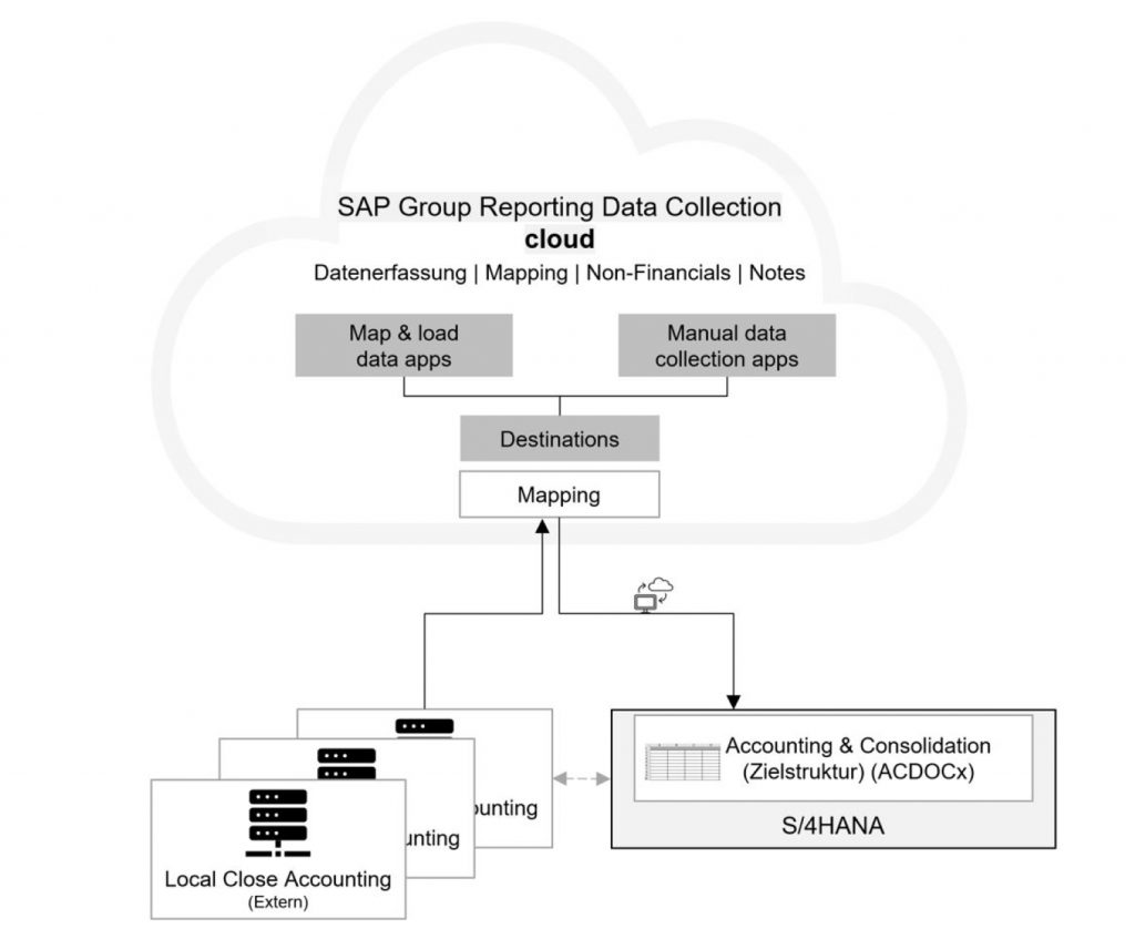 Mit dem neuen Release und der Nutzung der Group Reporting Data Collection kann nun jedes Vorsystem angebunden werden, um die Meldedaten in das Group Reporting zu importieren. Dazu ist es notwendig im Vorsystem eine automatische Schnittstelle (API) zu implementieren. Diese Schnittstelle wird von der SAP zur Verfügung gestellt. Über die Group Reporting Data Collection kann ein Mapping definiert werden, welches die Überleitung der Daten des Nicht S/4-Systems auf die Strukturen des Group Reporting ermöglicht.